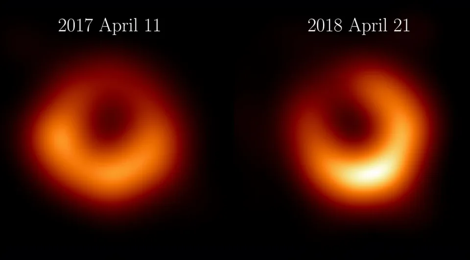 Sonuç, daha keskin ve daha parlak bir görüntü oldu ve ayrıca bir kara deliğin bir tarafının diğerine göre neden daha parlak göründüğünü açıklayan Doppler/Einstein etkilerini de net bir şekilde gösteriyor. İki görüntü arasında bu parlak noktanın sağa kaydığı görülüyor.