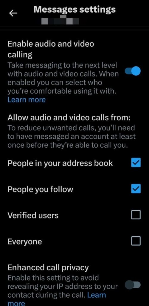 Resmi destek sayfasına göre, sesli ve görüntülü arama seçeneklerinizi Doğrudan Mesajlar ayarlarından kontrol edebiliyorsunuz. Oradan, varsayılan olarak takip ettiğiniz hesaplardan veya adres defterinizdeki kişilerden arama alabildiğinizi görüyorsunuz. (tabii ki X (eski adıyla Twitter)’a adres defterinize erişim izni vermeniz gerekiyor). Ancak başka bir kullanıcıyı aramak için, hem arayanın hem de arananın en az bir kez X’in Doğrudan Mesajları (DM) aracılığıyla iletişim kurmuş olması gerekiyor. X’in Doğrudan Mesajlar ayarlarındaki Sesli ve Görüntülü arama seçeneği bu, platformdaki herkesten arama alamayacağınız anlamına gelmiyor. Maceracı hissediyorsanız, bu seçeneği açıp bunu yapabilirsiniz. Ancak bunu yapmayı planlıyorsanız, size tavsiyemiz, aradığınız ve arama aldığınız kişilerden IP’nizi gizleyen yeni “Gelişmiş arama gizliliği” seçeneğini de açmanız olacaktır. Aslında, X’ten insanları aramayı planlıyorsanız, bu seçeneği zaten açmanız gerekir.