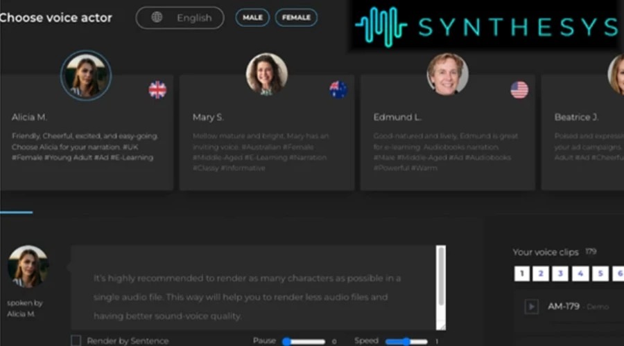sentez, yüksek kaliteli sesler oluşturmasıyla bilinen bir AI ses oluşturucudur. Çeşitli dilleri ve ses tonlarını destekler.