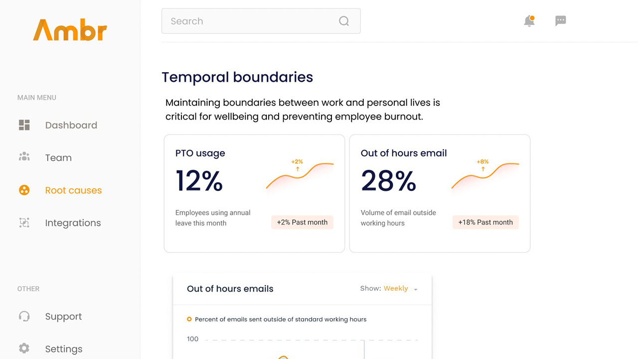 Özünde bir verimlilik uygulaması olan Ambr, çalışan tükenmişliğini önceliği olarak ele almayı amaçladığı bir platform üzerinden sağlıyor. Ambr 2022 yılı Şubat ayında, işçilerin tükenmişliğinin etkisine tanık olan eski Uber yöneticilerinden olan Zoe Stones, Steph Newton ve Jamie Wood tarafından kuruldu.