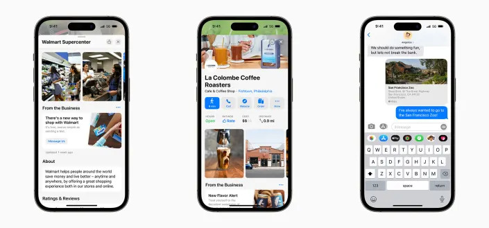Apple Haritaların bazı kullanıcılar için hâlâ Google Haritaların yerini alması pek mümkün değil ancak Apple özellik açığını kapatmanın başka bir yolu olduğunu düşünüyor. Şirket, herhangi bir firmanın Haritalar, Mesajlar, Siri ve Cüzdan gibi uygulamalarda konum kartlarını özelleştirmesine imkan veren ücretsiz bir Apple Business Connect aracını piyasaya sürdü. Buradan kullanıcılar kendi görüntülerini ekleyebilir, diğer uygulamalardaki eylemleri davet edebilir ya da en son tanıtımları sergileyebilir.