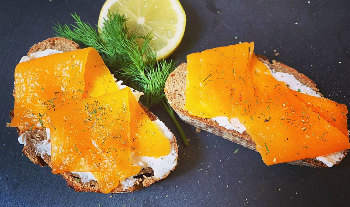“Salmon With Attitude” olarak adlandırılan ürün, tıpkı gerçek füme somon gibi görünüyor, ancak deniz ürünlerinin dokusunu ve görünümünü yeniden oluşturmak için 3D gıda baskısına dayanan yeni teknoloji kullanılarak geliştirildi. İşlem sırasında ise bezelye proteini, yosun özleri ve diyet lifleri gibi bileşenler, protein, omega 3 ve B12 bakımından yüksek bir baz oluşturmak için birleştirildi. Revo ayrıca kremsi füme somon ezmesi de üretti.