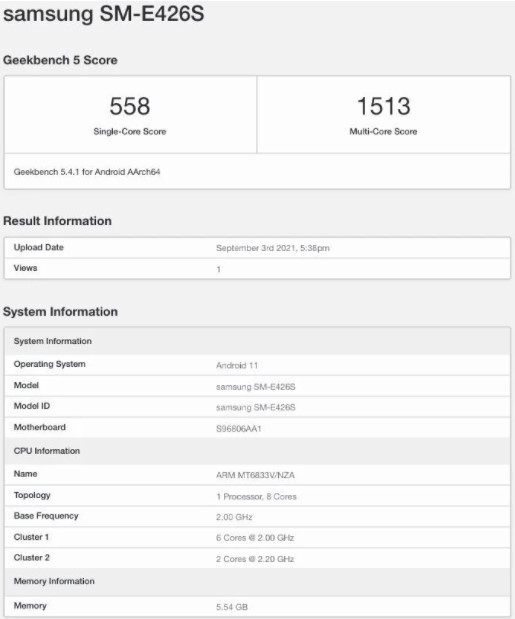Geekbench portalına göre Samsung Galaxy Wide5, diğer adıyla Galaxy F42 5G, kutudan çıktığı haliyle en son Android 11 ile çalışıyor. 558 tek çekirdek puanı ve 1513 çok çekirdek puanı alıyor. Liste, telefonun 6GB RAM ile eşleştirilmiş MediaTek Dimensity 700 SoC tarafından destekleneceğini ortaya koyuyor.