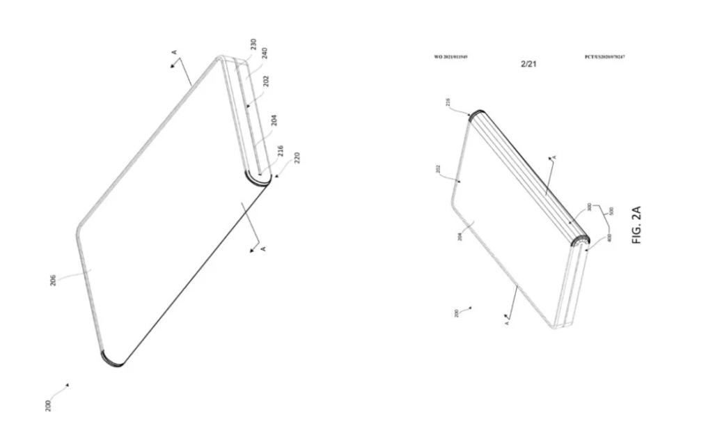 Cihazın planını gösteren önceki sızıntılara dayanarak, merkezde silindirik bir menteşe ile dışa doğru katlanır bir tasarımla Samsung Galaxy Fold serisine benzeyeceği varsayılabilir. Ancak sızıntı, Temmuz 2020’de başvurusu yapılan bir patentten kaynaklandı. Patentler yalnızca potansiyel tasarımlardır ve bu nedenle nihai ürün için bir gösterge olarak alınmamalıdır.