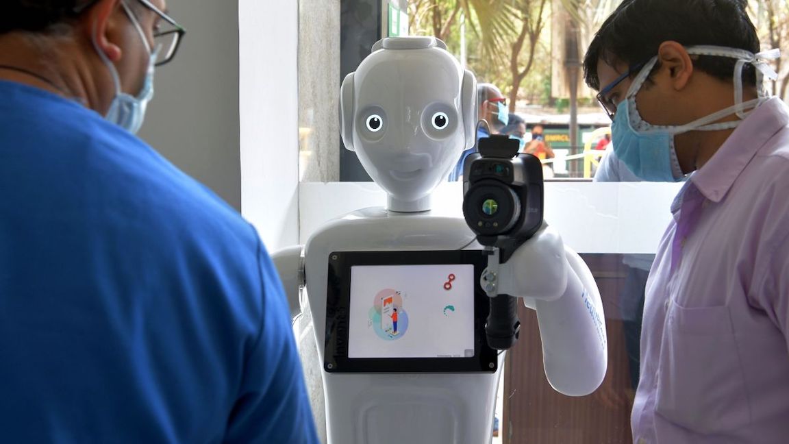 Hindistan’da pandemi kaynaklı vaka sayıları rekor kırmaya devam ediyor. COVID-19 kaynaklı kayıpların sayısı 120 bini geçti. Bu nedenle hükümetler robotların desteğini alarak hastanelerde oluşan yığılmayı azaltmayı hedefliyor. Intenvo Robotics isimli şirket yüzeyleri dezenfekte eden, hasta ve yakınların sorularına cevap veren ve hasta ile doktor arasında video görüşmesi sağlayan üç farklı model geliştirdi.