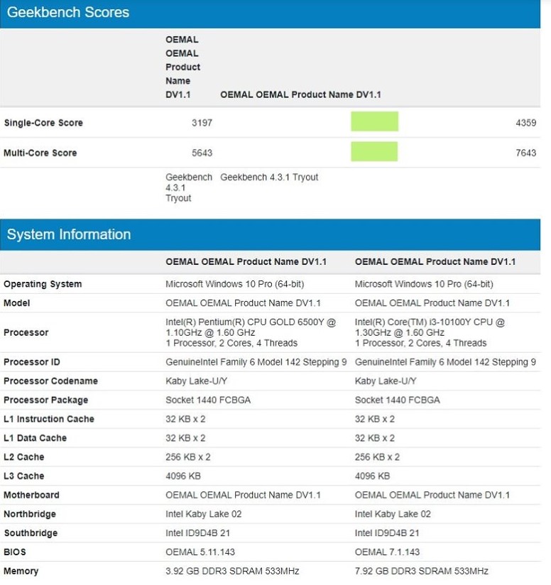 Geekbench sonuçlarında Intel Pentium Gold 6500Y, Go 2’nin Pentium Gold 4425Y’sinden yüzde 62 daha yüksek performans gösterirken, çoklu çekirdek performansında yüzde 48’lik bir iyileşme var. Bu arada, Intel Core i3-10100Y sürümü, tek çekirdek performansında yüzde 4’lük bir artış ve çok çekirdekli testlerde yüzde 11’lik bir iyileşme gösteriyor. Yeni i3-10100Y, Amber Lake Y serisinin enerji tasarruflu işlemcilerine aittir.