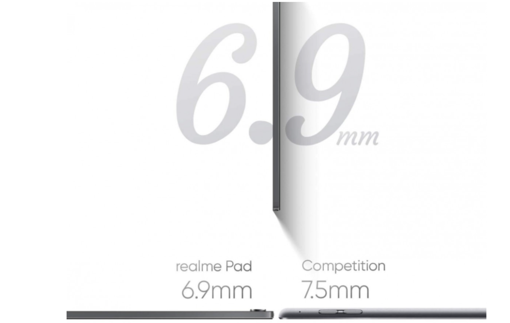 Bu bilgiler Realme CEO’su Madhav Sheth tarafından Twitter üzerinden açıklandı. Ayrıca Realme Pad’in sadece 6,9 mm kalınlığında ince ve hafif bir yapıya sahip olacağını doğruluyor. Ekranın, 2000 X 1200 piksel çözünürlüğe sahip 10,4 inç Geniş Ekran Ultra Genişletilmiş Grafik Dizisi plus (WUVGA+) ekranı olduğu gösteriliyor. Ekran ayrıca geniş bir en-boy oranına ve %82,5’lik bir ekran-gövde oranına sahip olup, sürükleyici bir görüntü sağlıyor.