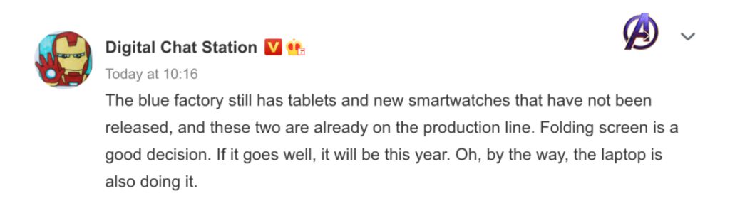 Şirketin, Vivo markalı tabletin yanı sıra, bir akıllı saatin de seri üretimine başladığı ve Vivo’nun bu ürünleri resmi olarak piyasaya sürmesi ve piyasada satmaya başlaması an meselesi. Kısa süre önce Vivo, tablet pazarına girişini doğrulamış ve ilk cihazın 2021’in 4. çeyreğinde resmiyet kazanacağını eklemişti.