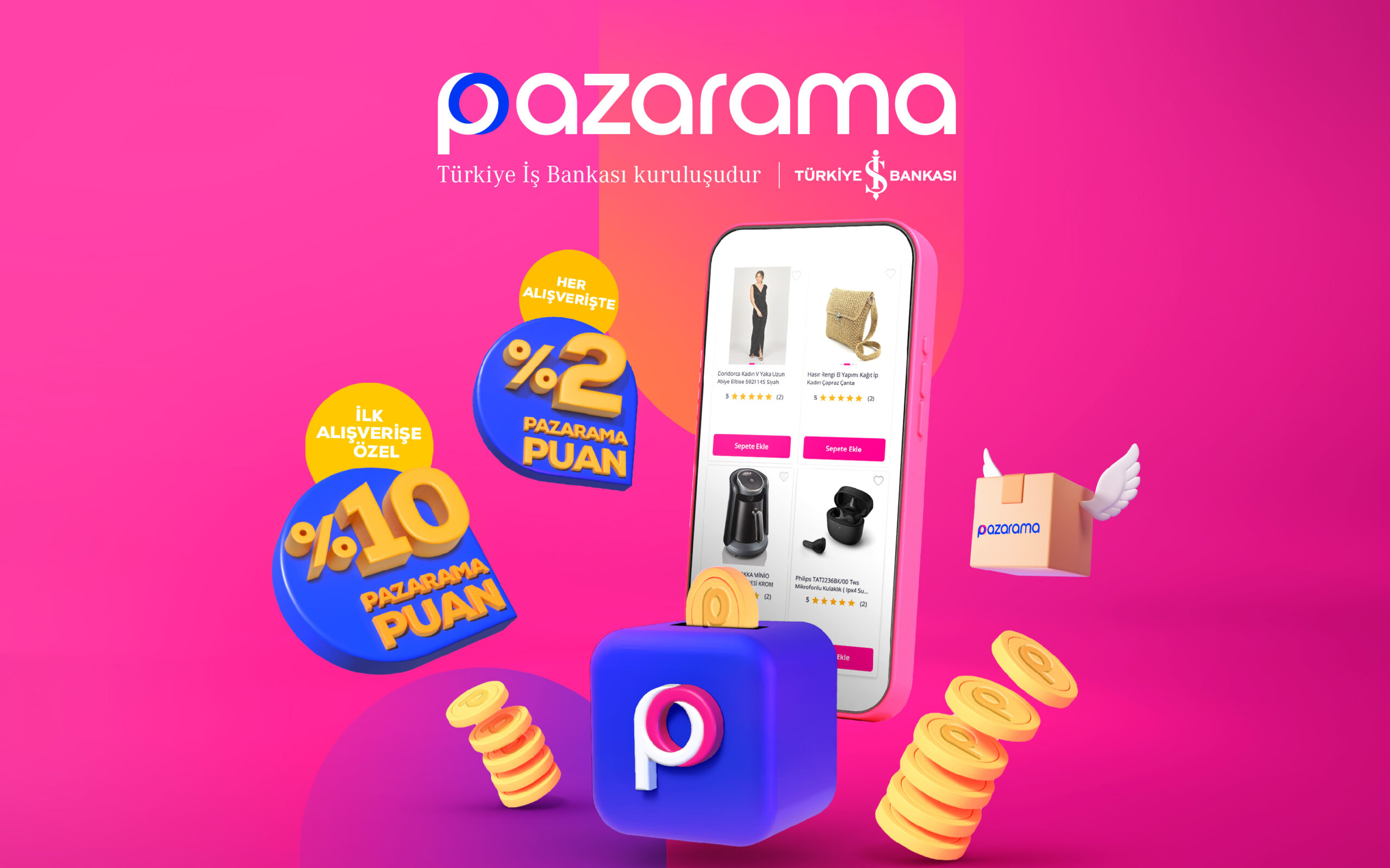 Türkiye’nin öncü ve köklü bankalarından Türkiye İş Bankası iştiraki Pazarama, kullanıcılarına avantaj sağlamaya devam ediyor. Elektronikten kozmetiğe, modadan süpermarkete milyonlarca perakende satış ürününü bünyesinde barındıran online alışveriş uygulaması Pazarama, “Pazarama Cüzdan” ile e-ticaret alanındaki yetkinliklerine bir yenisini daha ekleyerek tüketicilere her alışverişte kazandırdığı puanlar ile önemli faydalar sağlıyor.