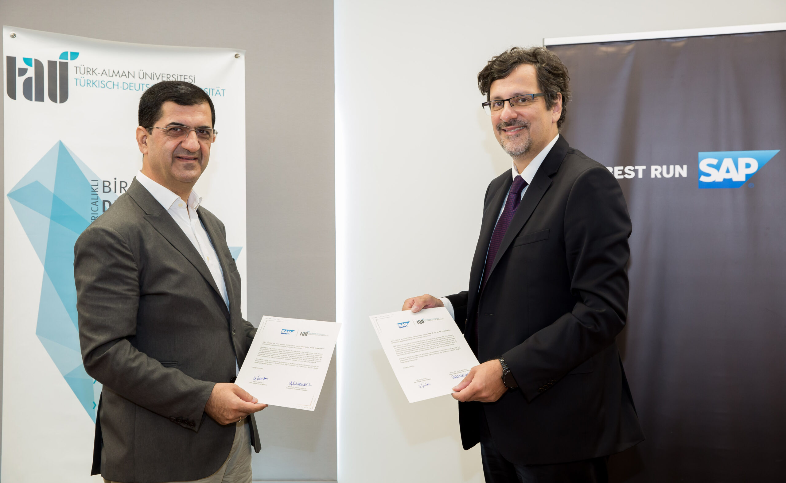 Bu iş birliğini duyurmak amacıyla Türk-Alman Üniversitesi’nin Beykoz’da yer alan kampüsünde bir imza töreni düzenledi. Törene; Türk-Alman Üniversitesi Rektörü Prof. Dr. Halil Akkanat, SAP Türkiye Genel Müdürü Uğur Candan, SAP Türkiye Kamu İlişkileri Direktörü Dr. Onur Yıldırım, TAÜ Koordinatörü Prof. Dr. İzzet Furgaç ve Bilgisayar Mühendisliği Bölümü Öğretim Üyesi Dr. Ahmet Yıldız katıldı.