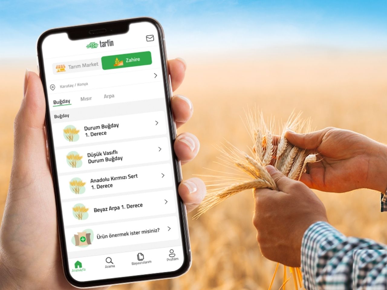 Tarfin’in mahsul satımlarını güvenli ve kârlı şekilde yapabilmeleri için de çiftçilerin yanında olduğunu dile getiren Memecan, Türkiye’nin 4 ilinde hizmete başladıklarını ancak hedeflerinin Türkiye’deki tüm çiftçilere ulaşmak olduğunu söylüyor. Tarfin Zahire’de Temmuz – Ağustos aylarında hasat zamanı gelen buğday ve arpa için fiyatlar yer almaya başladı. Farklı zahirelerin arpa, yemlik arpa, anadolu kırmızı sert buğdayı, durum buğdayı, ekmeklik ve makarnalık mahsullerin tamamı için alım fiyatları Tarfin Mobil’de çiftçi ile buluşuyor. Tarfin, sadece arpa ve buğday ile sınırlı kalmayacakları, çiftçilerin önümüzdeki aylarda ayçiçeği ve mısır mahsul satışları için fiyatlara Tarfin Mobil’den ulaşılabileceklerini belirtiyor.