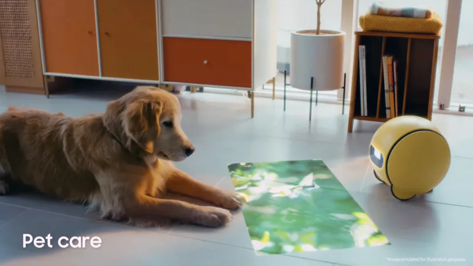 Dört yıl sonra, Ballie büyümüş gibi görünüyor. Şimdi “bowling topu boyutunda” ve mekansal bir LiDAR sensörü ile 1080p projektöre sahip. İki lensli bu projektör, robotun çevresindeki yüzeylere filmler, video çağrıları ve “karşılamalar” gibi içerikleri gösterebilmesini sağlıyor. Bir tanıtım videosunda, Ballie’nin bir kullanıcıya evine döndüğünde “Hoş Geldiniz” kelimesini yansıttığı ve bir konferans çağrısı, egzersiz videosu ve yakındaki bir PC’nin içeriğini ikincil bir ekran gibi gösterdiği görüldü. Ayrıca, bir golden retriever’a karşısına yeşillik videoları yansıtarak sevimli bir sahne de oluşturuldu.
